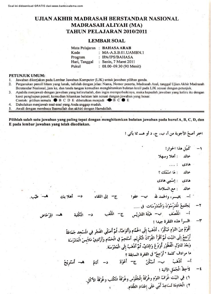 211461122 Soal Uambn Ma 2011 Bahasa Arab Pdf