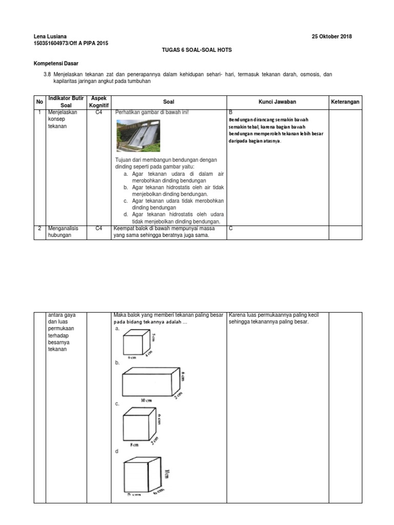 Doc Latihan Soal Materi Tekanan Kelas 8 Smp Nur Ifta Putri Academia Edu