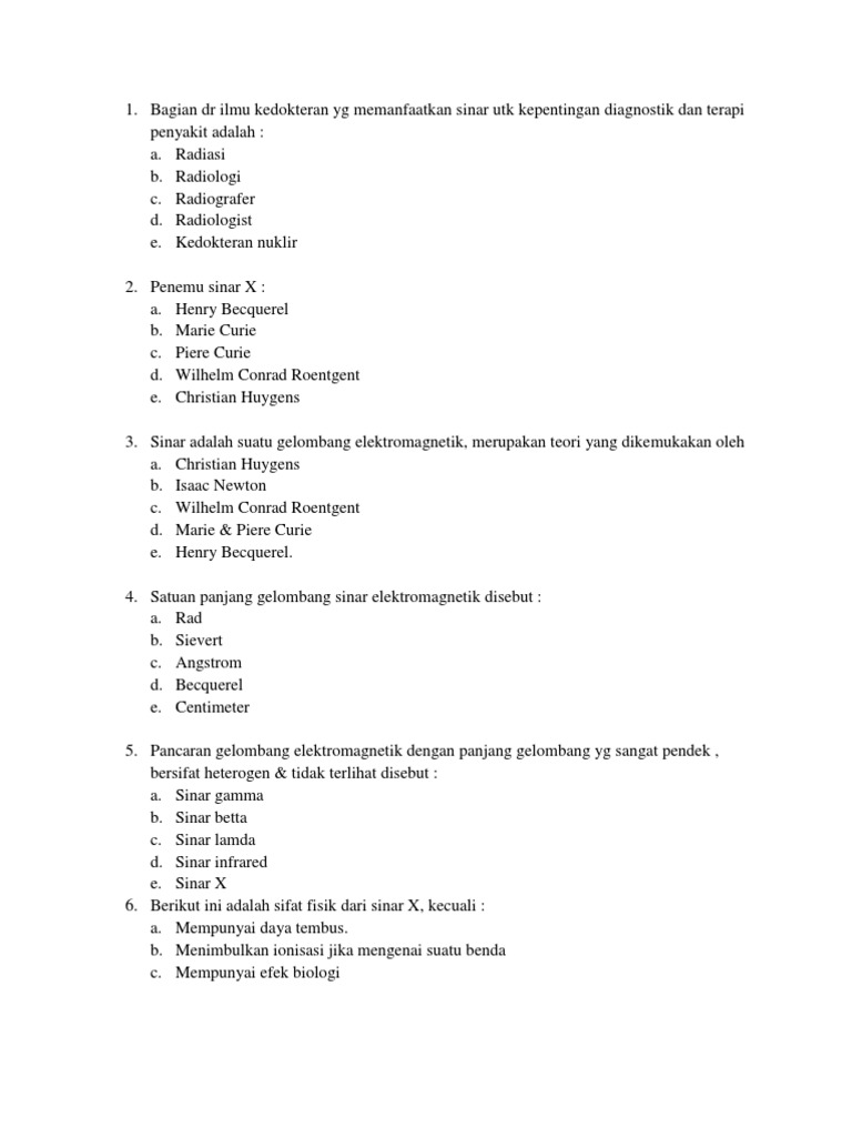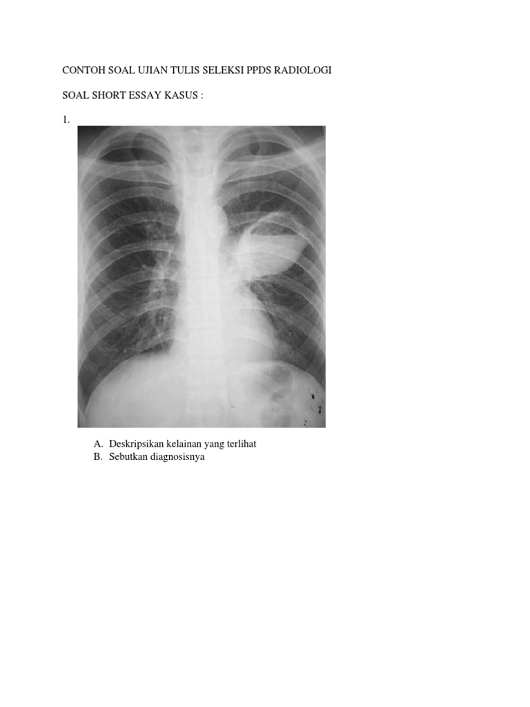 Kumpulan soal radiologi. Kumpulan Soal Latihan Premid Semester 2 2021 Kumpulan Soal UTS Semester 2 2021 0 24022021 13032021 Written by Alpha Radiografer Semangat ujiannya sob jangan SKS ya kasihan tubuhmu. Kumpulan soal soal 21 kumpulan soal soal dan jawaban 1 lateral 1 latihan soal soal 1. Kumpulan soal radiofotografi RADIOFOTOGRAFI Disusun oleh Aida Fitria Nur Afifah SEKOLAH TINGGI ILMU KESEHATAN CIREBON PROGRAM STUDI DIPLOMA III TEKNIK RADIODIAGNOSTIK DAN RADIOTERAPI JlBrigjen.