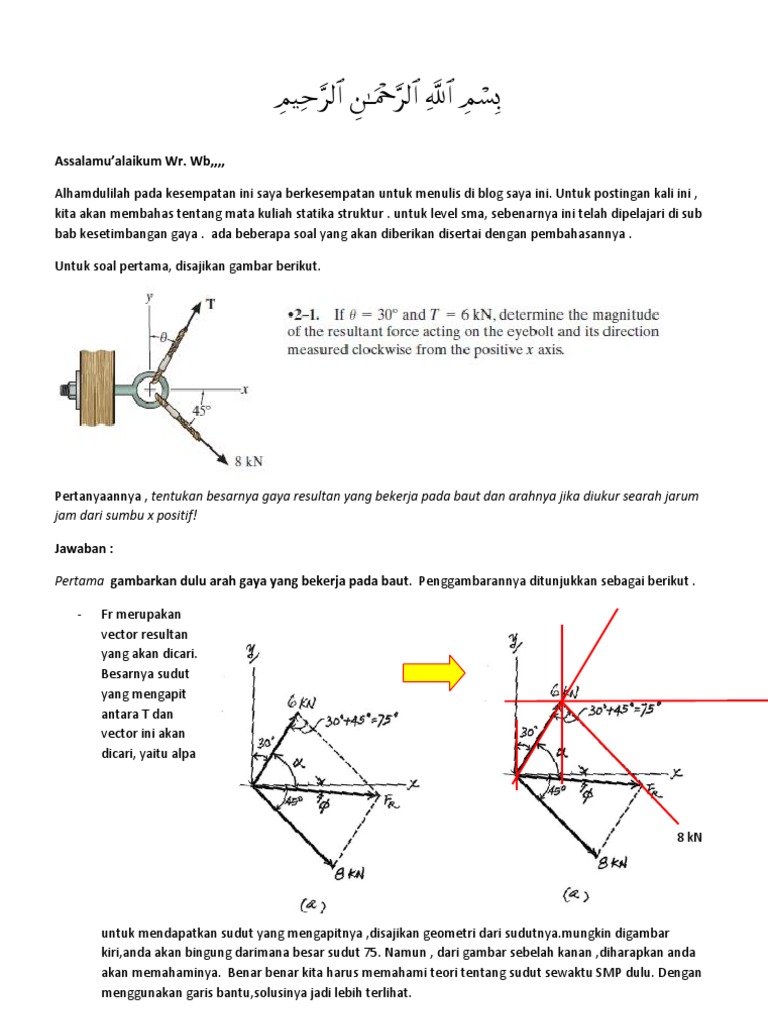 Kumpulan soal statika struktur vektor. Pembahasan dan contoh soal tentang vektor gaya ب س ــــــــــــــــم اﷲ الر ح م ن اار ح يم Assalamualaikum Wr. Proses pembelajaran statika struktur I tetapi dapat juga digunakan oleh para dosen pengajar lainnya. Wb Alhamdulilah pada kesempatan ini saya berkesempatan untuk menulis di blog saya ini.