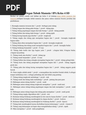 Latihan Soal Organ Tubuh Manusia Ipa Kelas 4 Sd