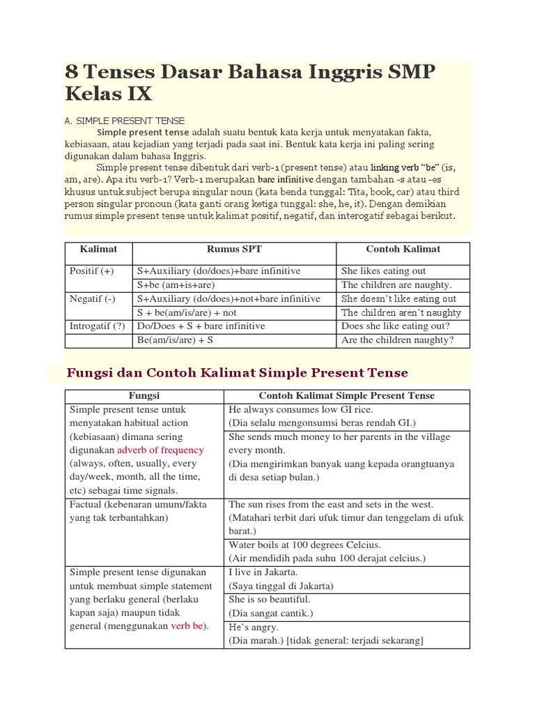 8 Tenses Dasar Bahasa Inggris Smp Kelas Ix Tense Tata Bahasa Kata Kerja
